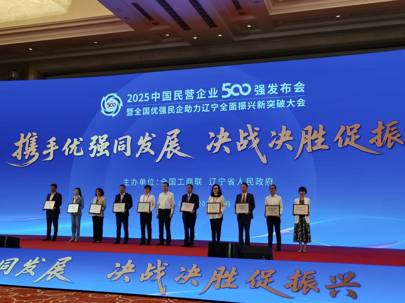 8月28日,全国工商联在辽宁沈阳举办以“携手优强同发展 决战决胜促振兴”为主题的2025中国民营企业500强发布会暨全国优强民企助力辽宁全面振兴新突破大会。会上发布了2025中国民营企业500强、制造业500强、服务业100强榜单。